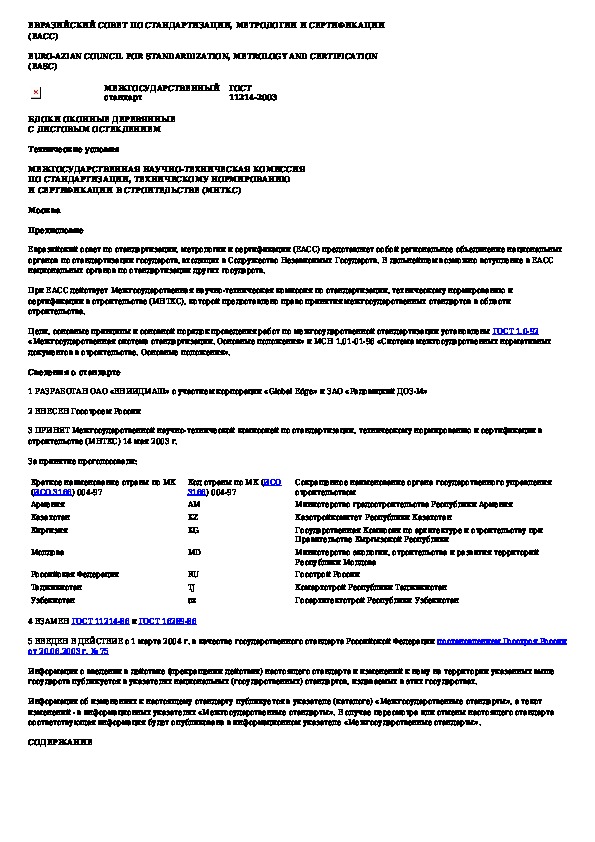 ГОСТ 11214-2003: Блоки оконные деревянные с листовым остеклением. Технические условия