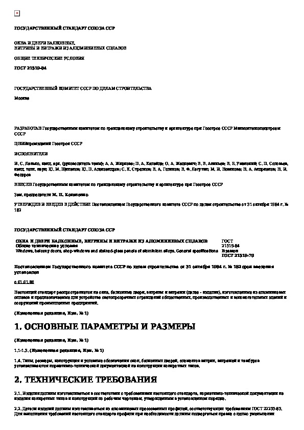 ГОСТ 21519-84: Окна и двери балконные, витрины и витражи из алюминиевых сплавов. Общие технические условия