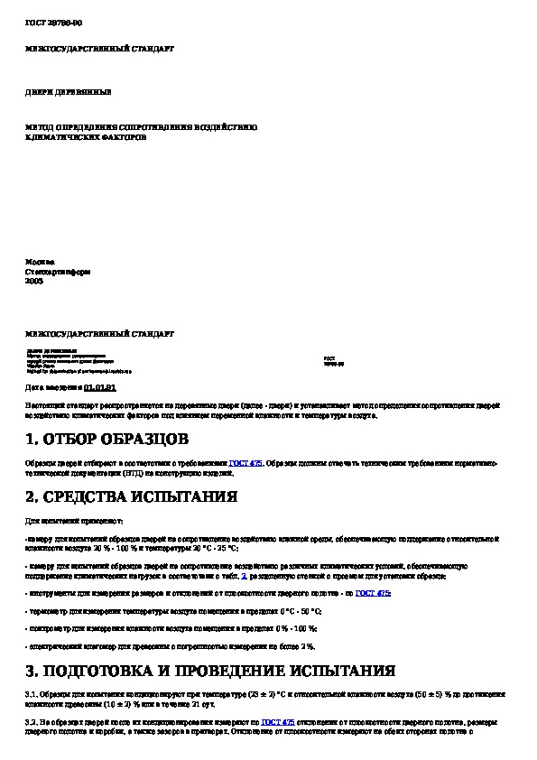 ГОСТ 28786-90: Двери деревянные. Метод определения сопротивления воздействию климатических факторов