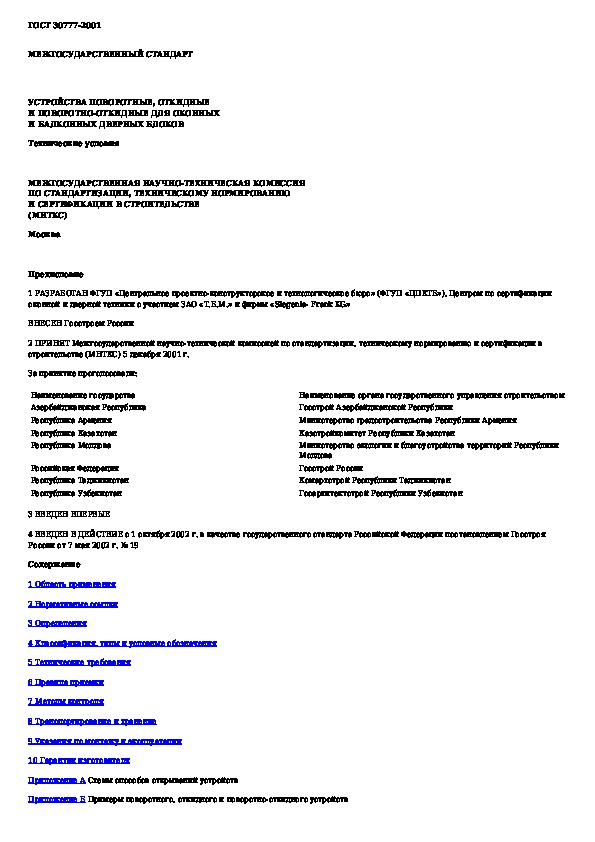 Наша цель состоит в том, чтобы предоставить вам быстрый доступ к содержанию документа Устройства поворотные, откидные и поворотно-откидные для оконных и балконных дверных блоков. Технические условия.