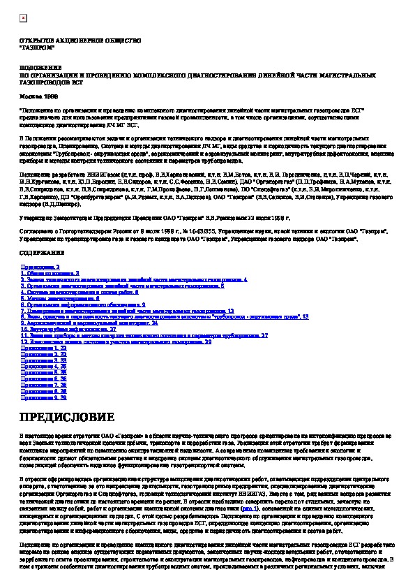Наша цель состоит в том, чтобы предоставить вам быстрый доступ к содержанию документа Положение по организации и проведению комплексного диагностирования линейной части магистральных газопроводов ЕСГ.