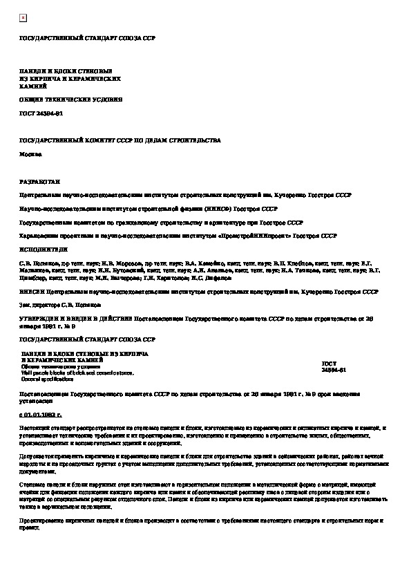 ГОСТ 24594-81: Панели и блоки стеновые из кирпича и керамических камней. Общие технические условия