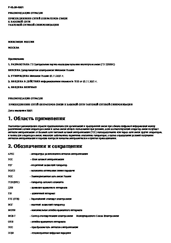 Наша цель состоит в том, чтобы предоставить вам быстрый доступ к содержанию документа Присоединение сетей операторов связи к базовой сети тактовой сетевой синхронизации.