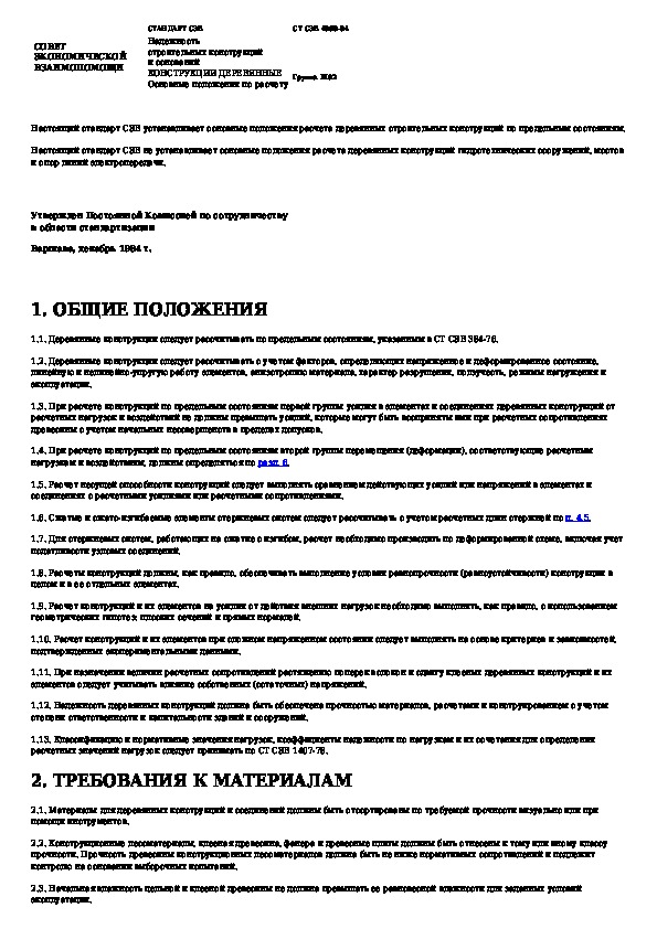 СТ СЭВ 4868-84: Надежность строительных конструкций и оснований. Конструкции деревянные. Основные положения по расчету