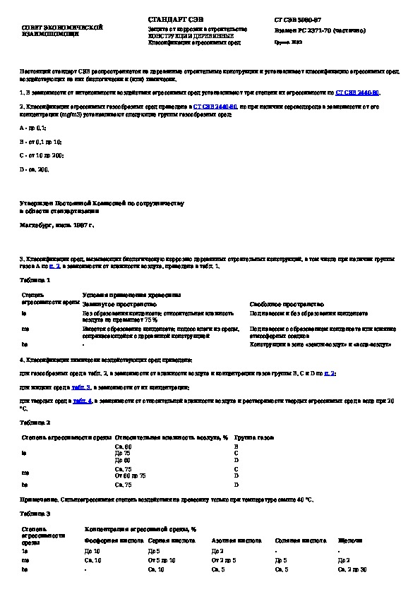 СТ СЭВ 5980-87: Защита от коррозии в строительстве. Конструкции деревянные. Классификация агрессивных сред