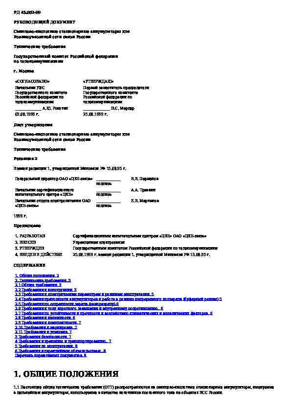 Наша цель состоит в том, чтобы предоставить вам быстрый доступ к содержанию документа Свинцово-кислотные стационарные аккумуляторы для Взаимоувязанной сети связи России. Технические требования.