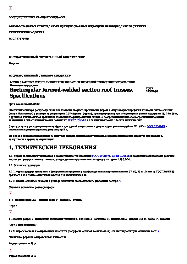 ГОСТ 27579-88: Фермы стальные стропильные из гнутосварных профилей прямоугольного сечения. Технические условия