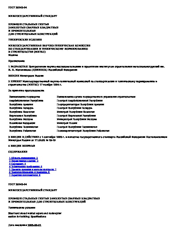 Наша цель состоит в том, чтобы предоставить вам быстрый доступ к содержанию документа Профили стальные гнутые замкнутые сварные квадратные и прямоугольные для строительных конструкций. Технические условия.