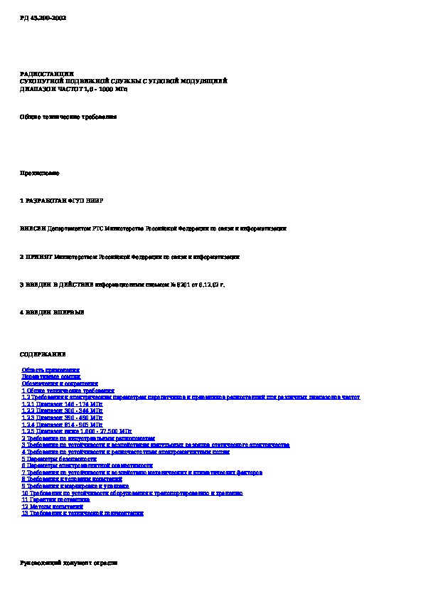 РД 45.299-2002: Радиостанции сухопутной подвижной службы с угловой модуляцией. Диапазон частот 1,6 - 1000 МГц. Общие технические требования