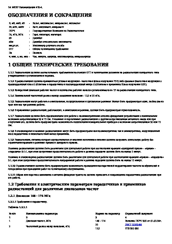 Наша цель состоит в том, чтобы предоставить вам быстрый доступ к содержанию документа Радиостанции сухопутной подвижной службы с угловой модуляцией. Диапазон частот 1,6 - 1000 МГц. Общие технические требования.