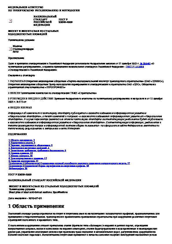 Наша цель состоит в том, чтобы предоставить вам быстрый доступ к содержанию документа Шпунт и шпунт-сваи из стальных холодногнутых профилей. Технические условия.