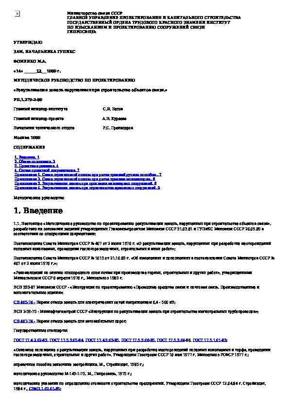 Наша цель состоит в том, чтобы предоставить вам быстрый доступ к содержанию документа Методическое руководство по проектированию. Рекультивация земель, нарушенных при строительстве объектов связи.