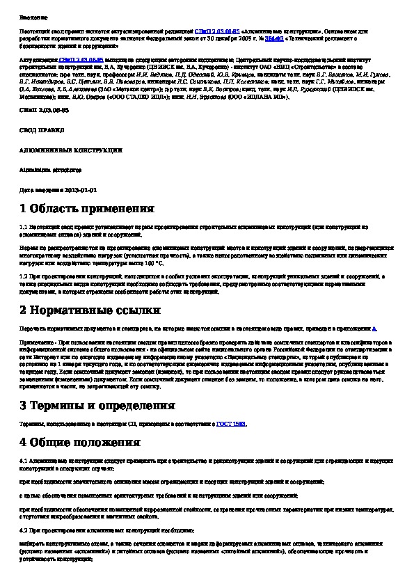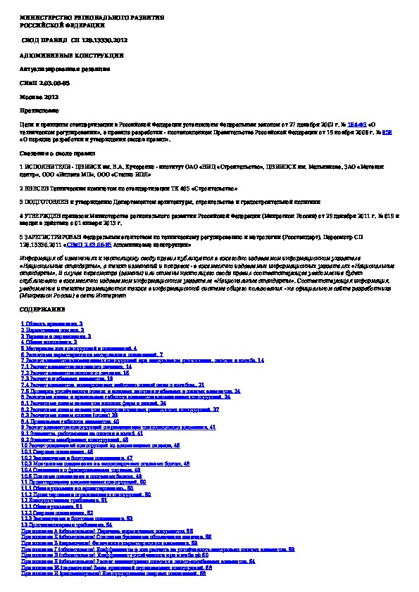 СП 128.13330.2012: Алюминиевые конструкции