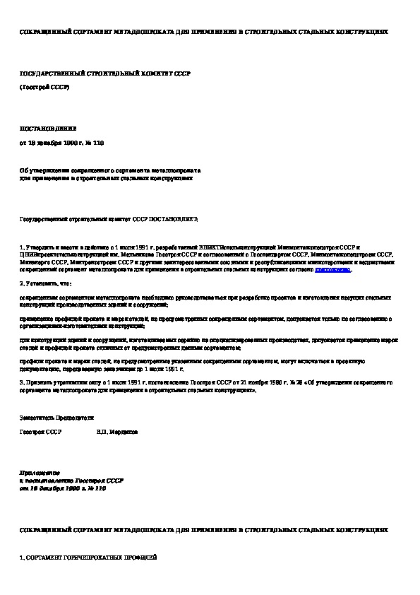 Наша цель состоит в том, чтобы предоставить вам быстрый доступ к содержанию документа Сокращенный сортамент металлопроката для применения в строительных конструкциях.