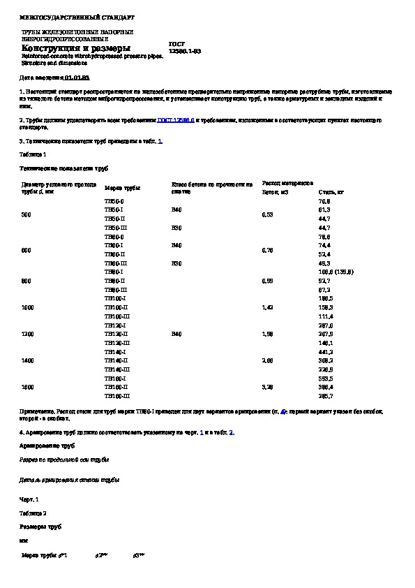 ГОСТ 12586.1-83: Трубы железобетонные напорные виброгидропрессованные. Конструкция и размеры