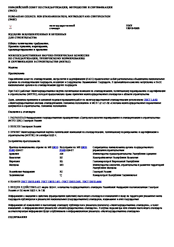 Наша цель состоит в том, чтобы предоставить вам быстрый доступ к содержанию документа Изделия железобетонные и бетонные для строительства. Общие технические требования. Правила приемки, маркировки, транспортировани.