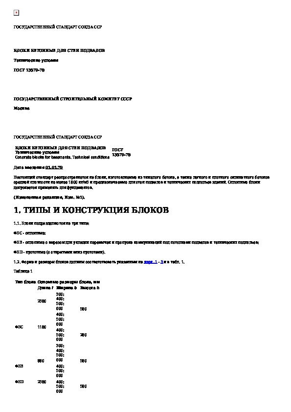 ГОСТ 13579-78: Блоки бетонные для стен подвалов. Технические условия