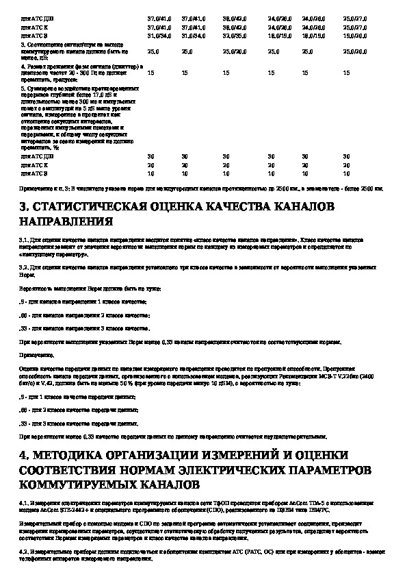 Эксплуатационные нормы на электрические параметры коммутируемых каналов сети ТфОП