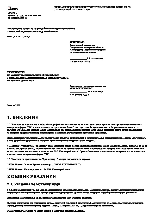 Руководство по монтажу соединительных муфт на кабелях с гидрофобным заполнением марок ТППэпЗ и ТПппЗП на местных сетях связи