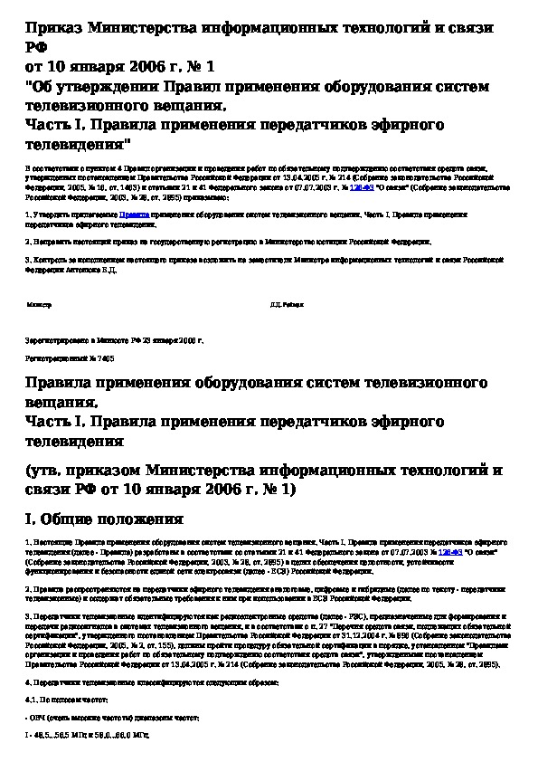 • Загрузка на компьютер - Вы можете также скачать Правила применения оборудования систем телевизионного вещания. Часть I. Правила применения передатчиков эфирного телевидения на свой компьютер и сохранить его в файлах.