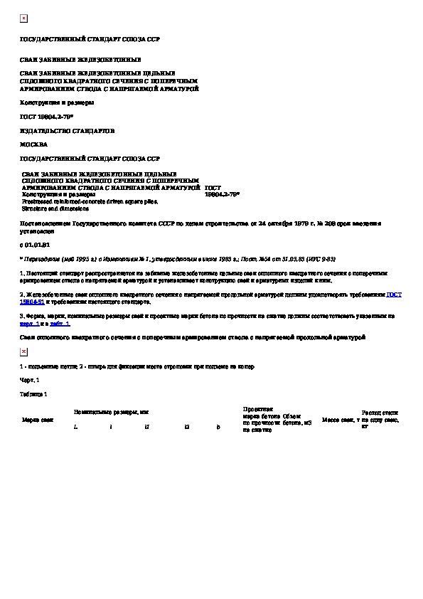 ГОСТ 19804.2-79: Сваи забивные железобетонные цельные сплошного квадратного сечения с поперечным армированием ствола с напрягаемой арматурой. Ко