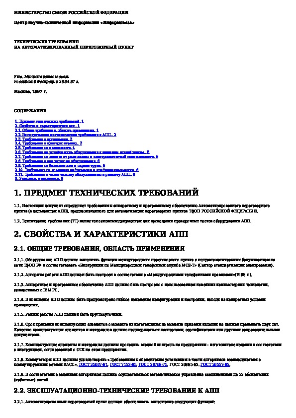 Наша цель состоит в том, чтобы предоставить вам быстрый доступ к содержанию документа Технические требования на автоматизированный переговорный пункт.