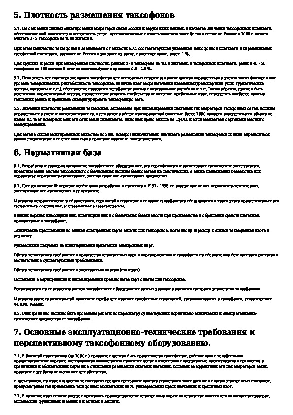 Концепция применения таксофонного оборудования на телефонной сети общего пользования России