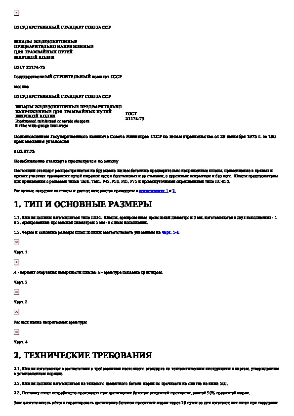 ГОСТ 21174-75: Шпалы железобетонные предварительно напряженные для трамвайных путей широкой колеи
