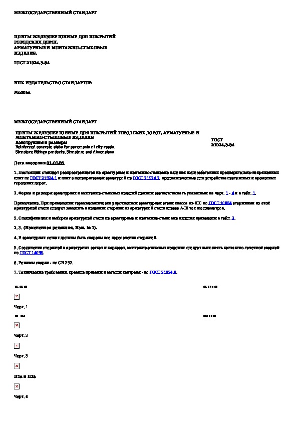 ГОСТ 21924.3-84: Плиты железобетонные для покрытий городских дорог. Арматурные и монтажно-стыковые изделия. Конструкция и размеры