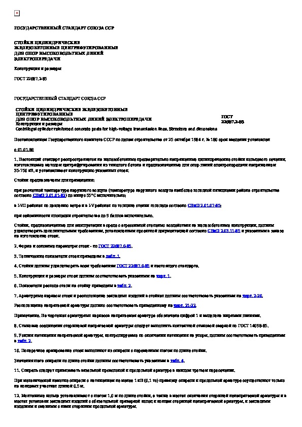 ГОСТ 22687.2-85: Стойки цилиндрические железобетонные центрифугированные для опор высоковольтных линий электропередачи. Конструкция и размеры