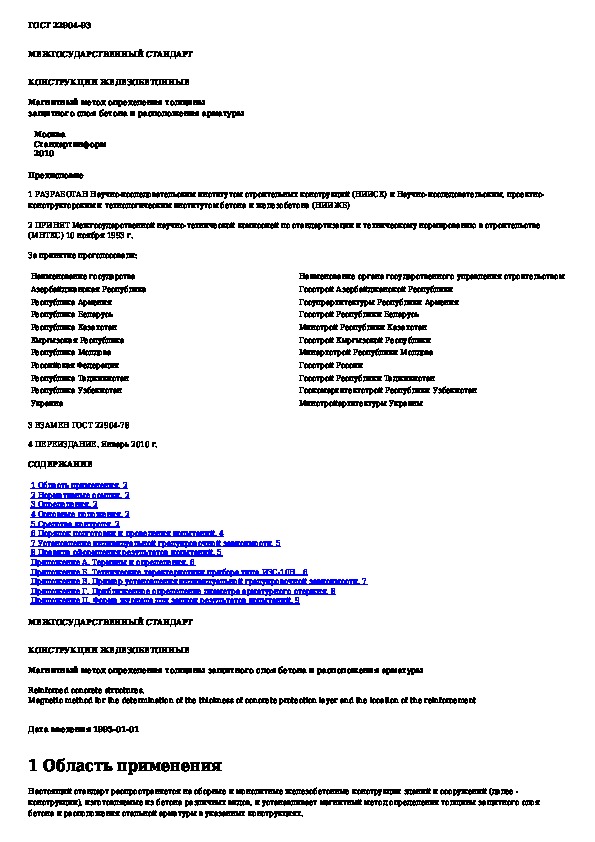 ГОСТ 22904-93: Конструкции железобетонные. Магнитный метод определения толщины защитного слоя бетона и расположения арматуры