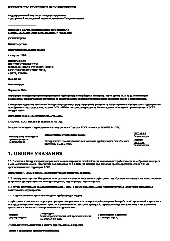 ВСН 49-83: Инструкция по проектированию межзаводских трубопроводов газообразных кислорода, азота, аргона