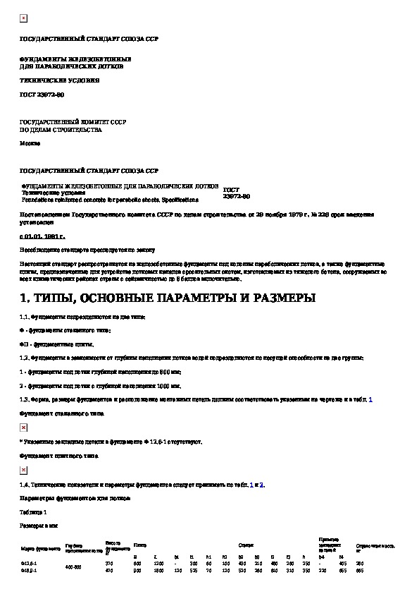 ГОСТ 23972-80: Фундаменты железобетонные для параболических лотков. Технические условия