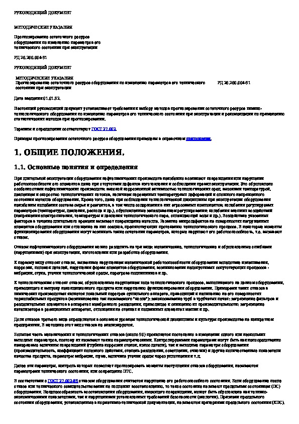 Наша цель состоит в том, чтобы предоставить вам быстрый доступ к содержанию документа Методические указания. Прогнозирование остаточного ресурса оборудования по изменению параметров его технического состояния при .