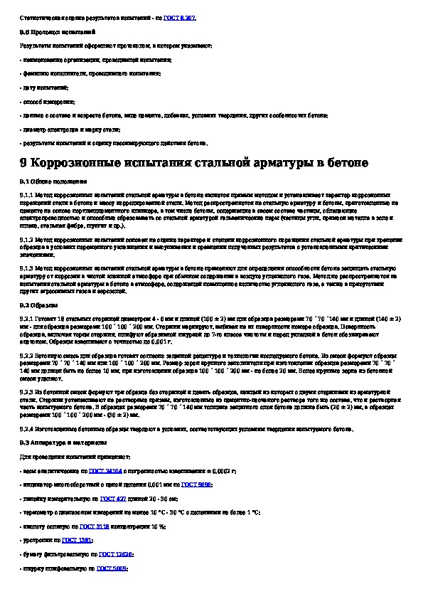 Защита бетонных и железобетонных конструкций от коррозии. Методы испытаний