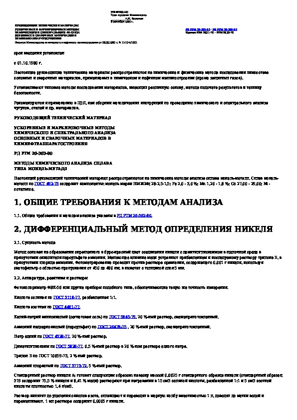 РД РТМ 26-363-80: Ускоренные и маркировочные методы химического и спектрального анализа основных и сварочных материалов в химнефтеаппаратостроен