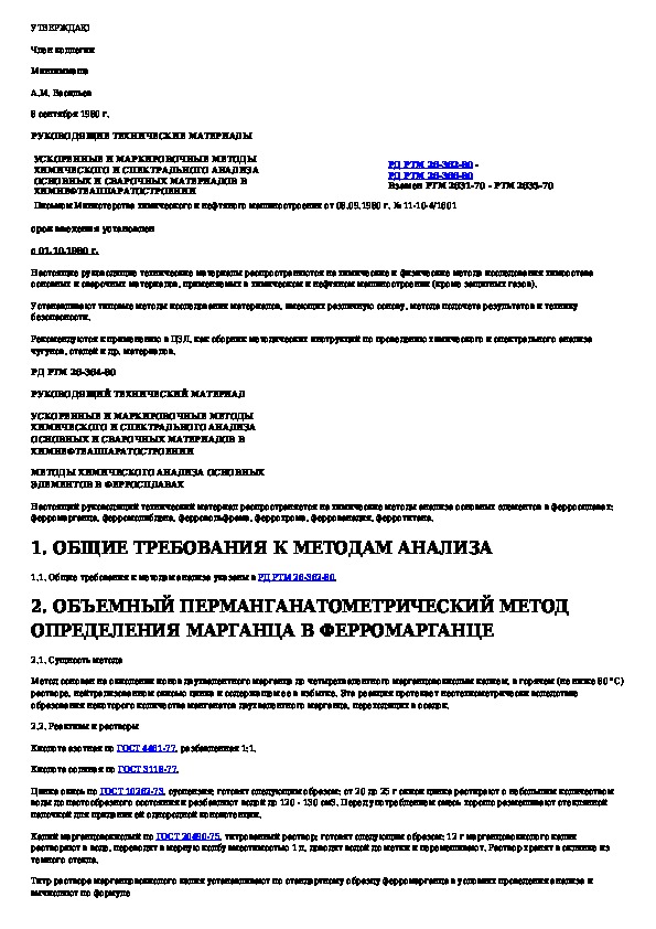 РД РТМ 26-364-80: Ускоренные и маркировочные методы химического и спектрального анализа основных и сварочных материалов в химнефтеаппаратостроен