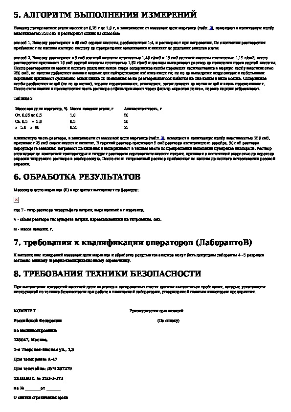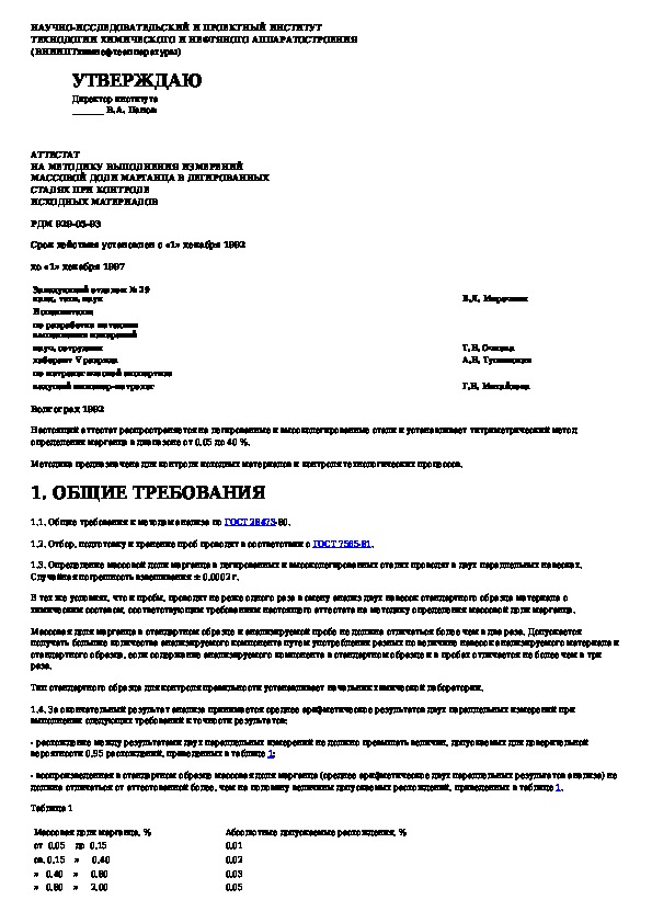 Аттестат на методику выполнения измерений массовой доли марганца в легированных сталях при контроле исходных материалов