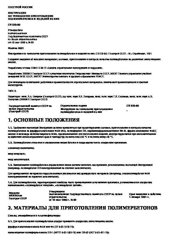 СН 525-80: Инструкция по технологии приготовления полимербетонов и изделий из них