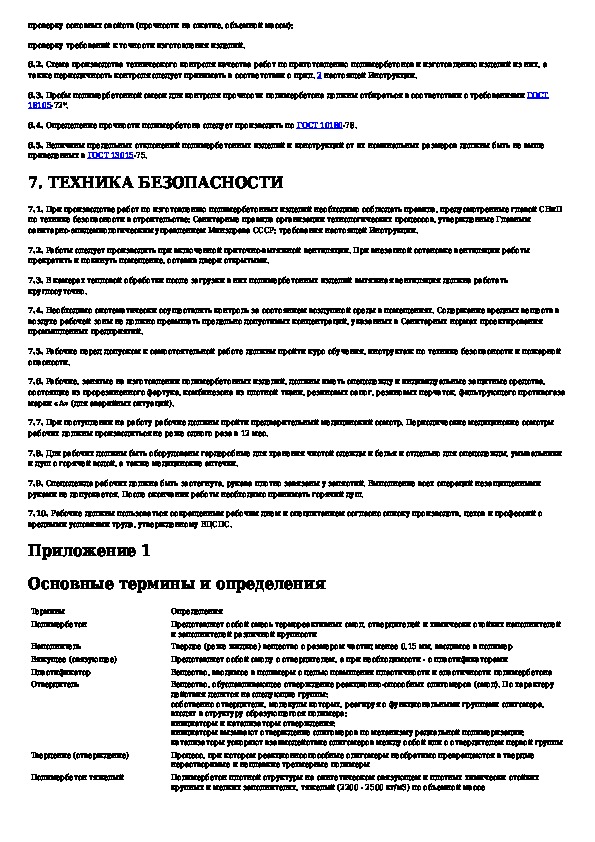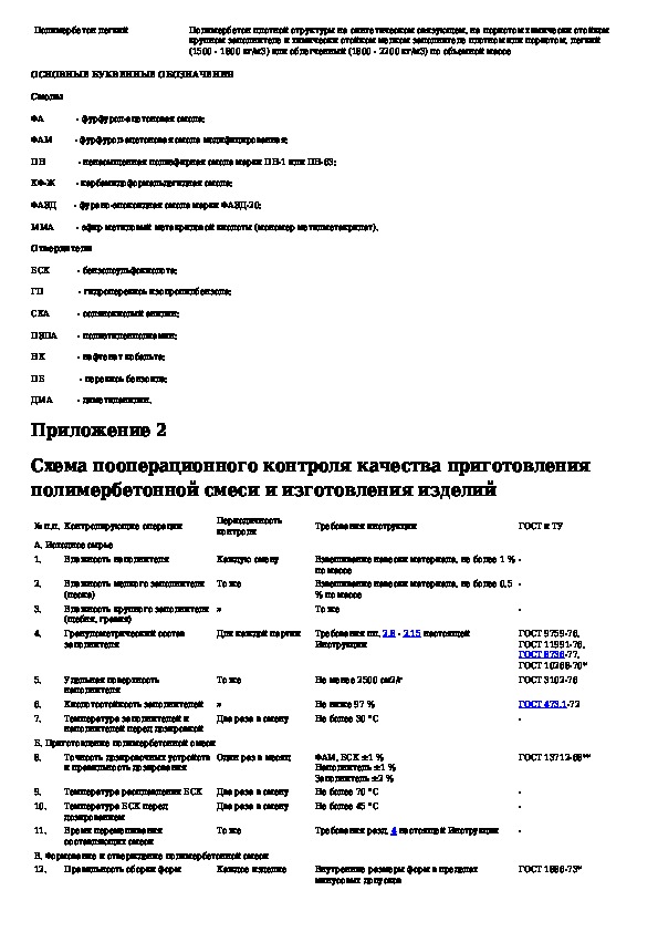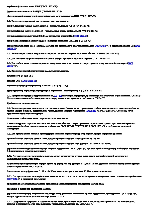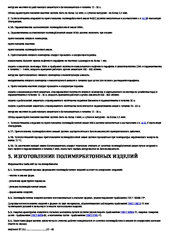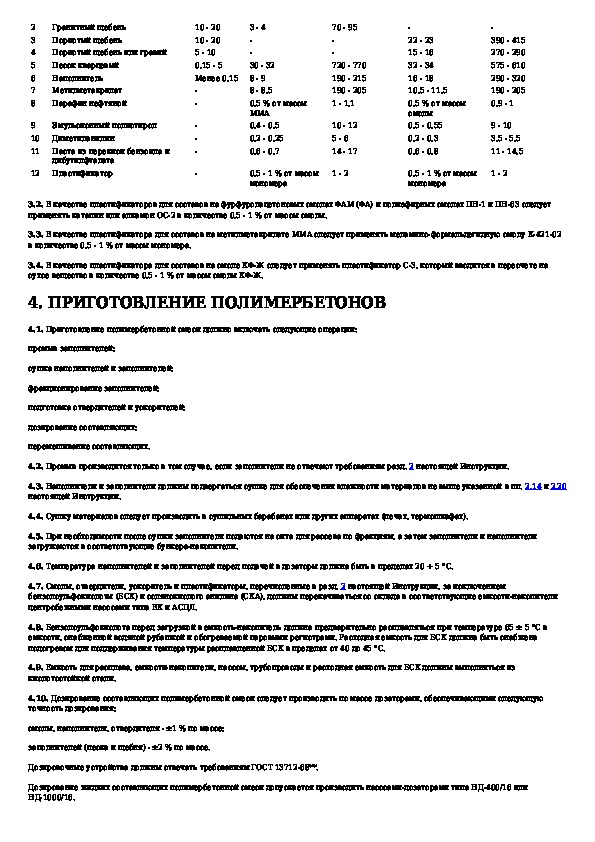 Инструкция по технологии приготовления полимербетонов и изделий из них