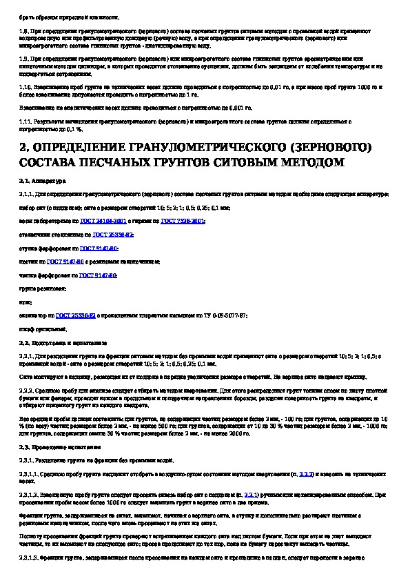 Наша цель состоит в том, чтобы предоставить вам быстрый доступ к содержанию документа Грунты. Методы лабораторного определения гранулометрического (зернового) и микроагрегатного состава.