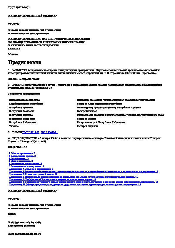 Наша цель состоит в том, чтобы предоставить вам быстрый доступ к содержанию документа Грунты. Методы полевых испытаний статическим и динамическим зондированием.