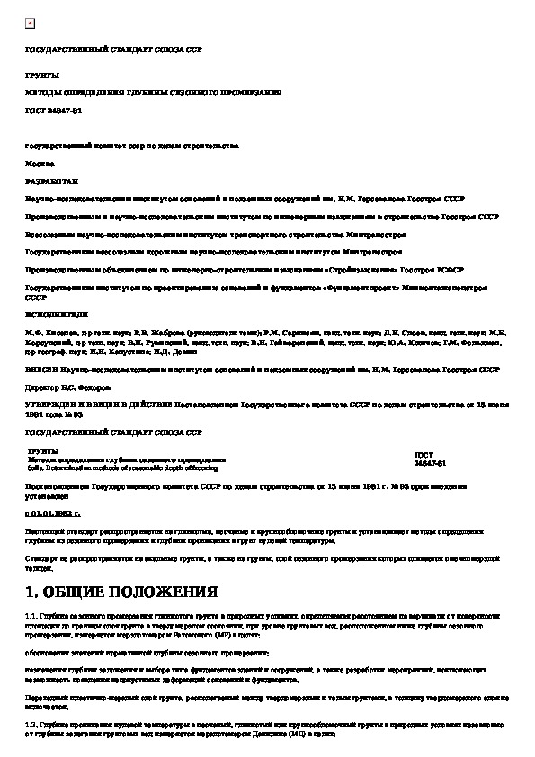 Наша цель состоит в том, чтобы предоставить вам быстрый доступ к содержанию документа Грунты. Методы определения глубины сезонного промерзания.