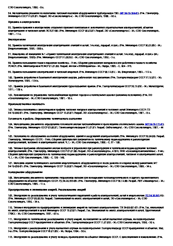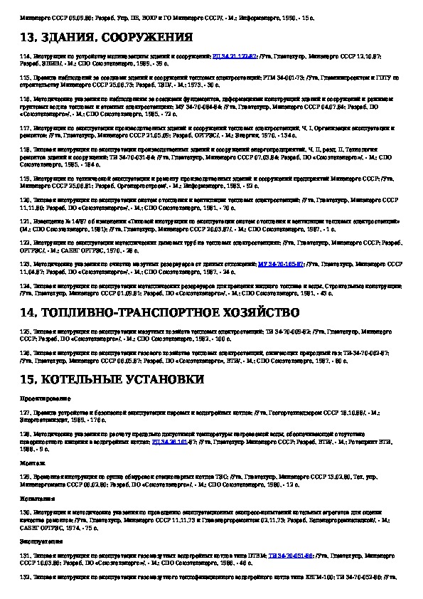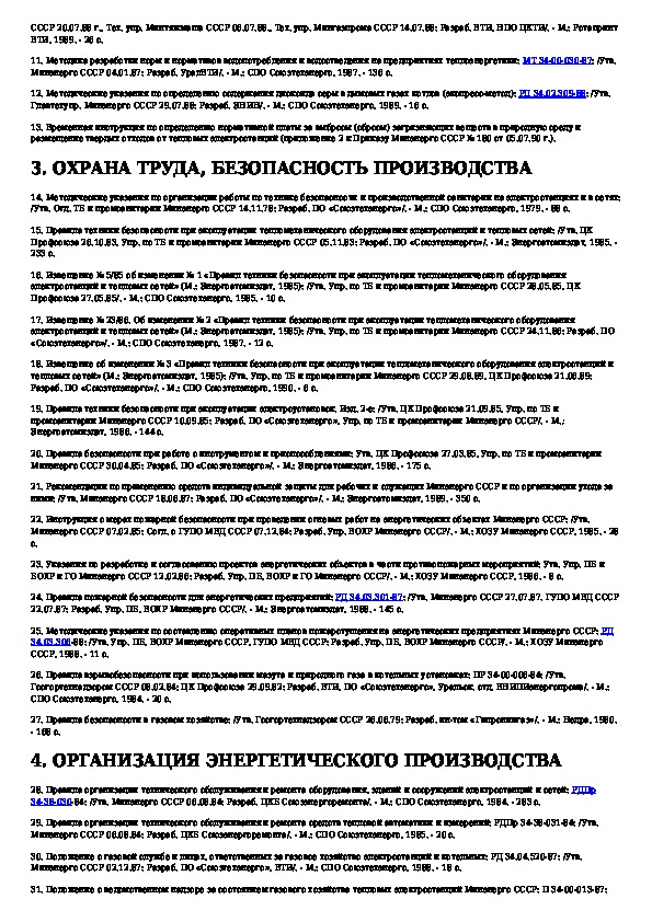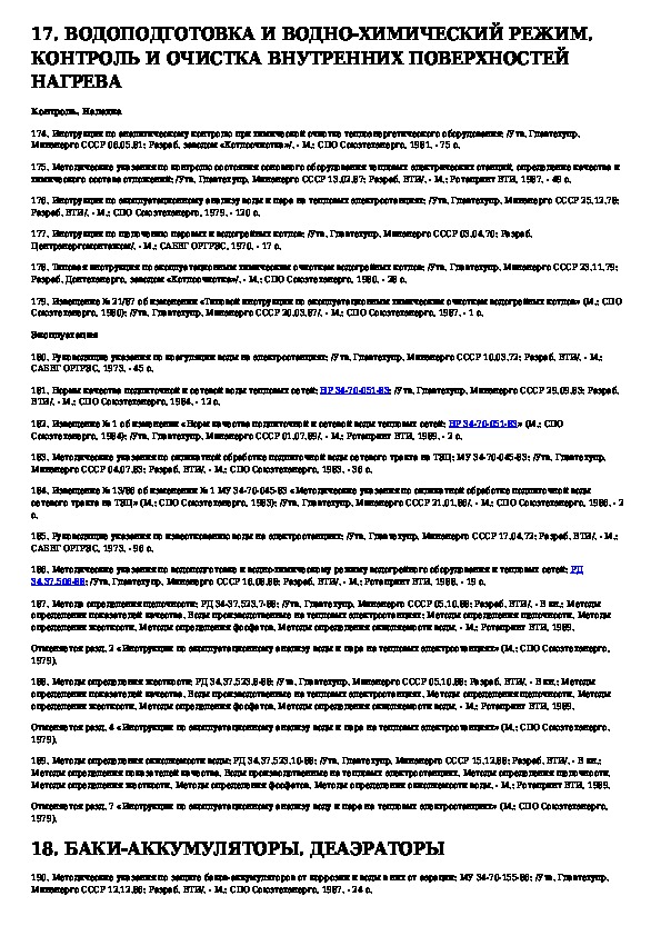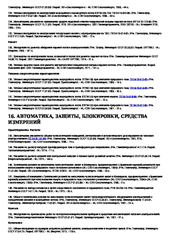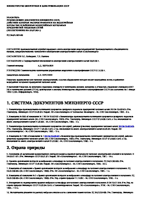 Указатель руководящих документов Минэнерго СССР, действие которых распространяется на водогрейные котлы ТЭЦ и районные водогрей