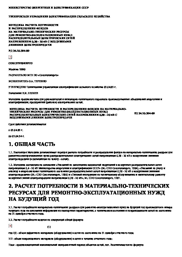 РД 34.10.394-89: Методика расчета потребности и распределения фондов на материально-технические ресурсы для ремонтно-эксплуатационных нужд распр