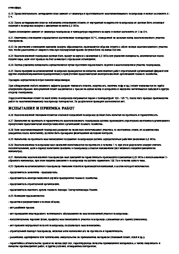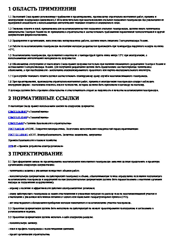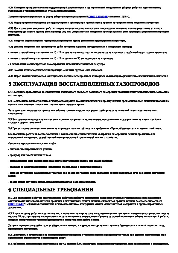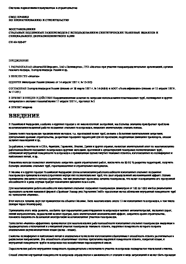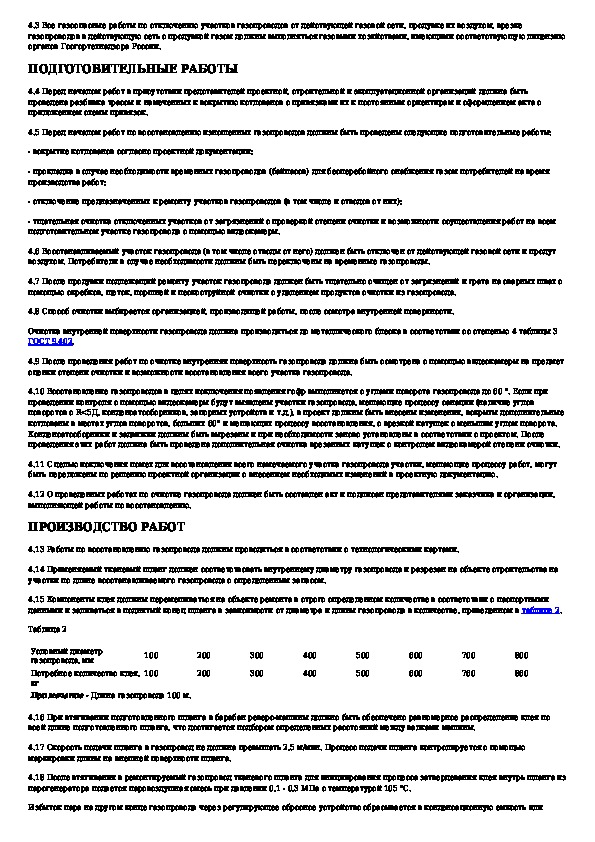 СП 42-103-97: Восстановление стальных подземных газопроводов с использованием синтетических тканевых шлангов и специального двухкомпонентно
