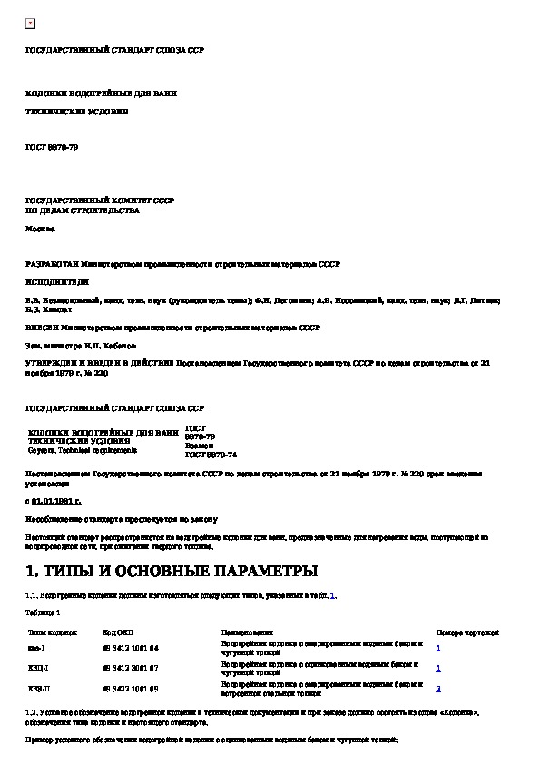 ГОСТ 8870-79: Колонки водогрейные для ванн. Технические условия