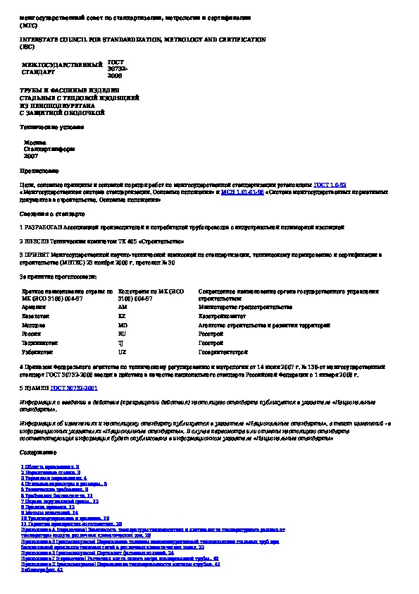 Наша цель состоит в том, чтобы предоставить вам быстрый доступ к содержанию документа Трубы и фасонные изделия стальные с тепловой изоляцией из пенополиуретана с защитной оболочкой. Технические условия.