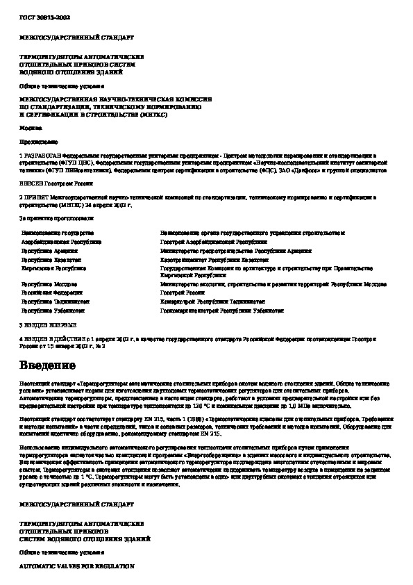 Наша цель состоит в том, чтобы предоставить вам быстрый доступ к содержанию документа Терморегуляторы автоматические отопительных приборов систем водяного отопления зданий. Общие технические условия.
