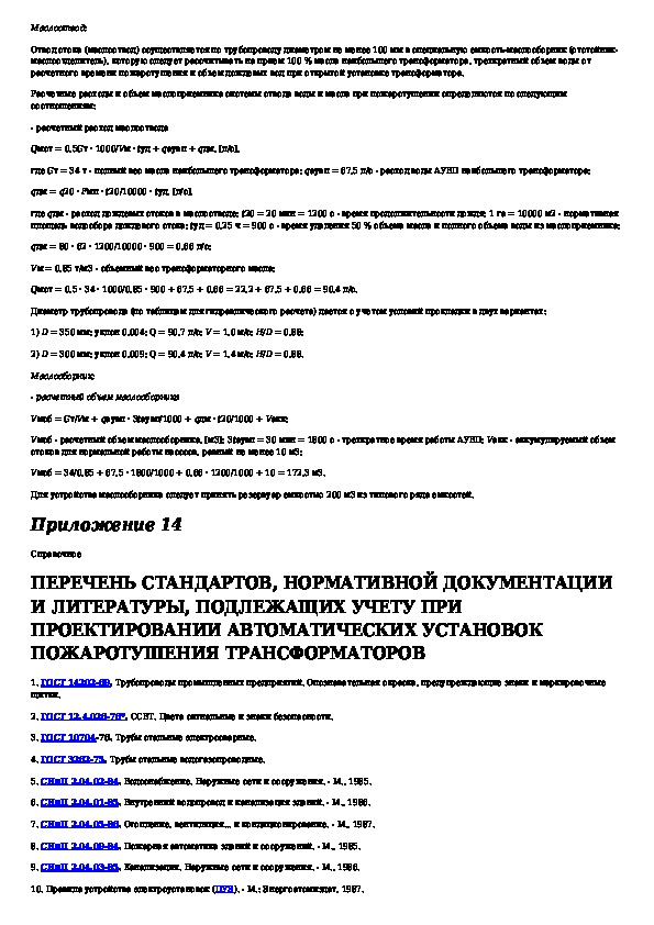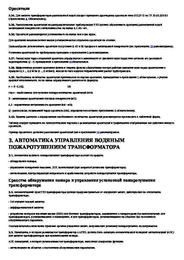РД 34.49.104: Рекомендации по проектированию автоматических установок водяного пожаротушения масляных силовых трансформаторов